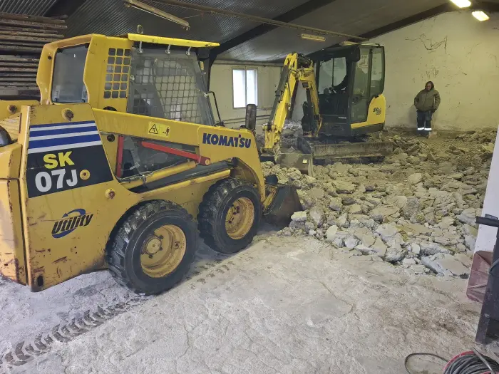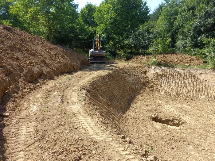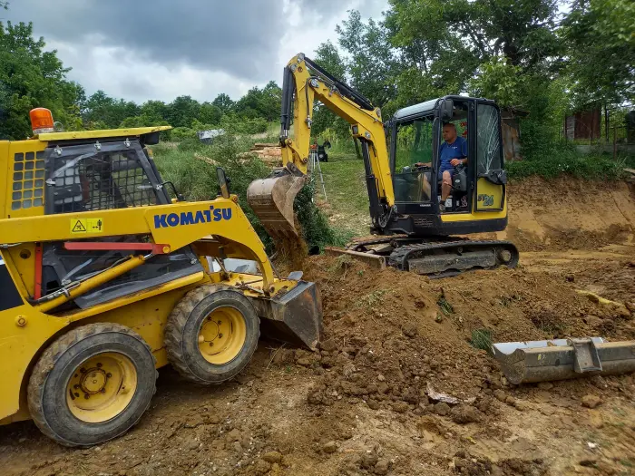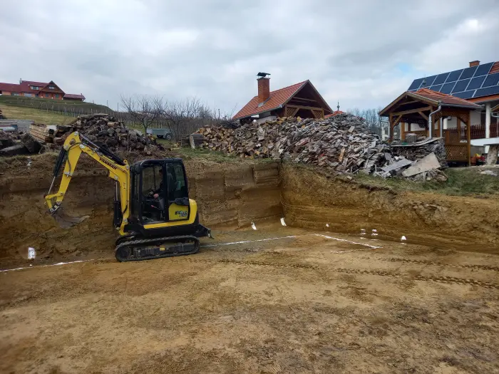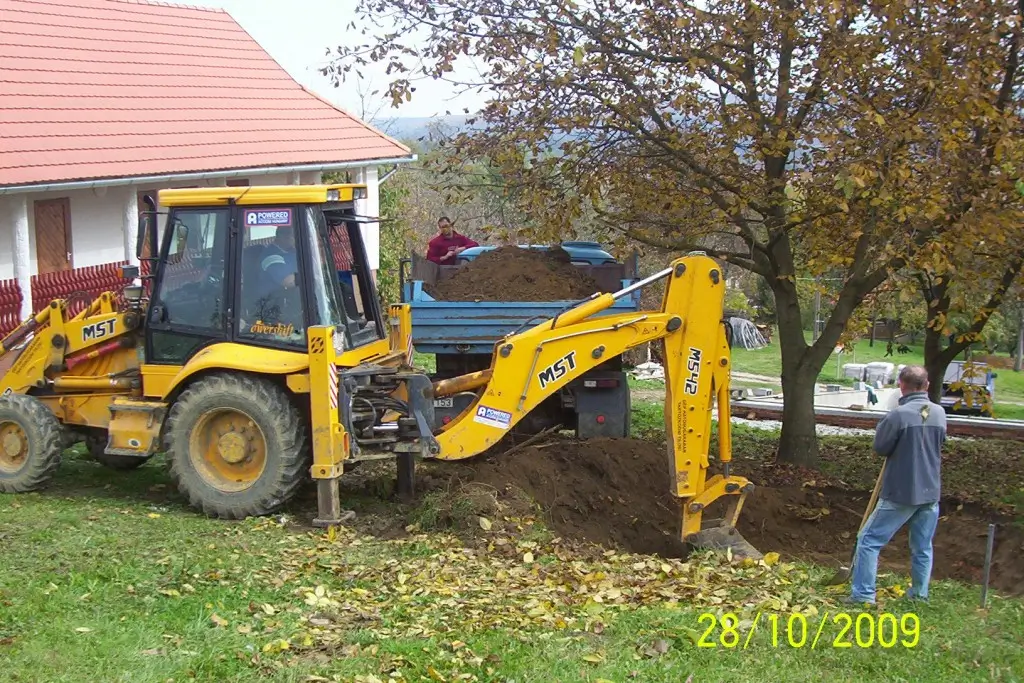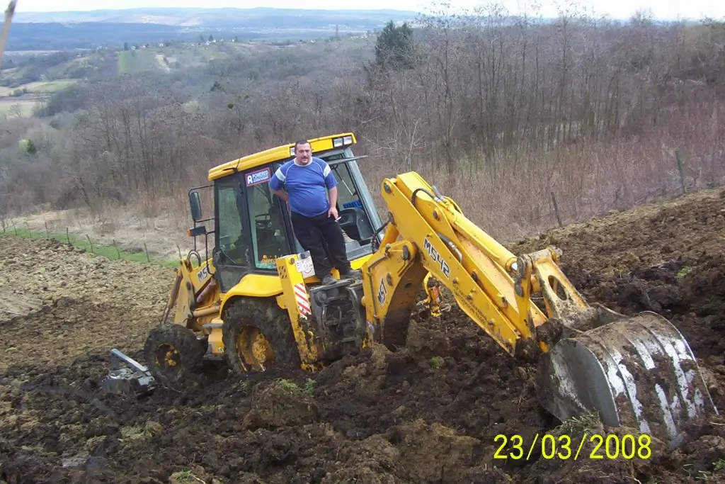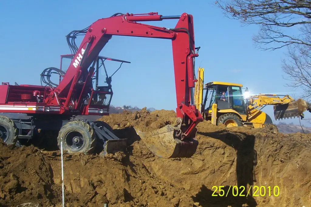 Alap-, pince-, medenceásás, vízelvezető és közműárok kiemelés, tuskózás, termőföldforgatás, területek tisztítása, rézsűk, domboldalak kialakítása, utak egyengetése, profilozása, épületek bontása gépi erővel