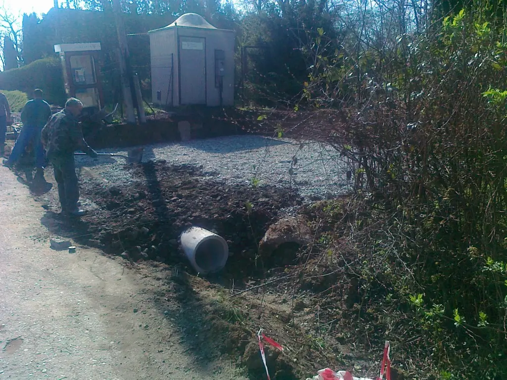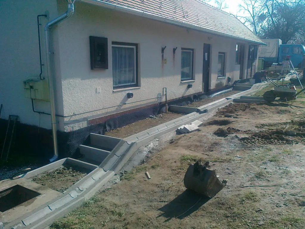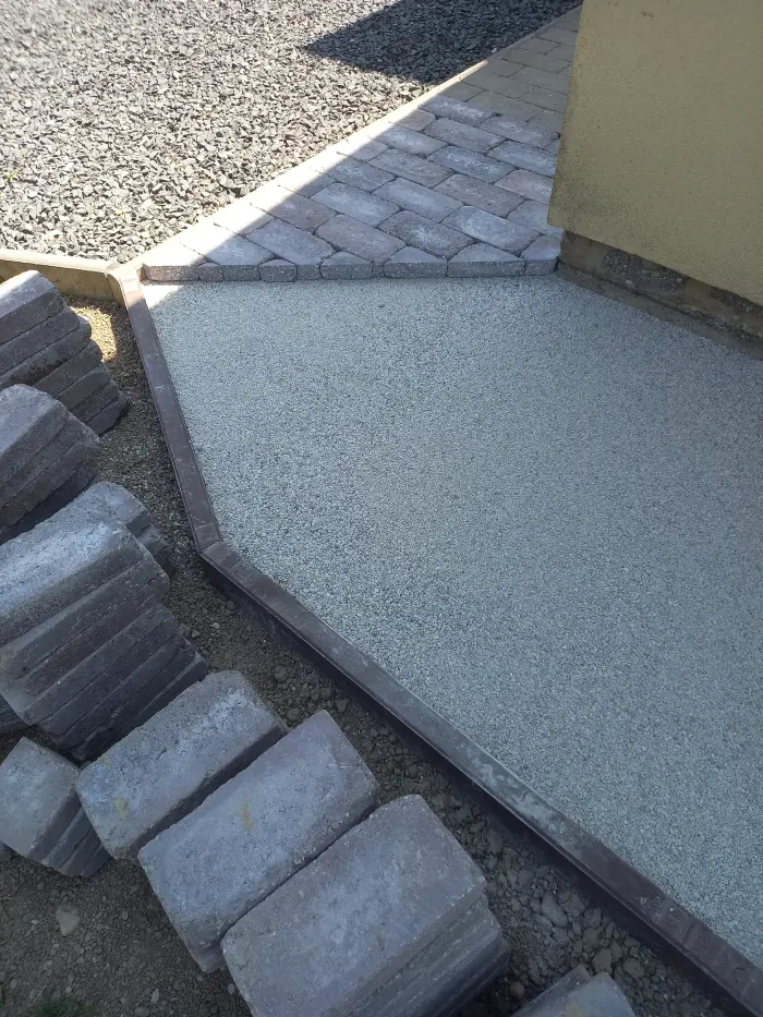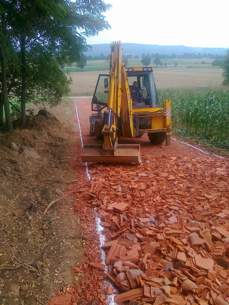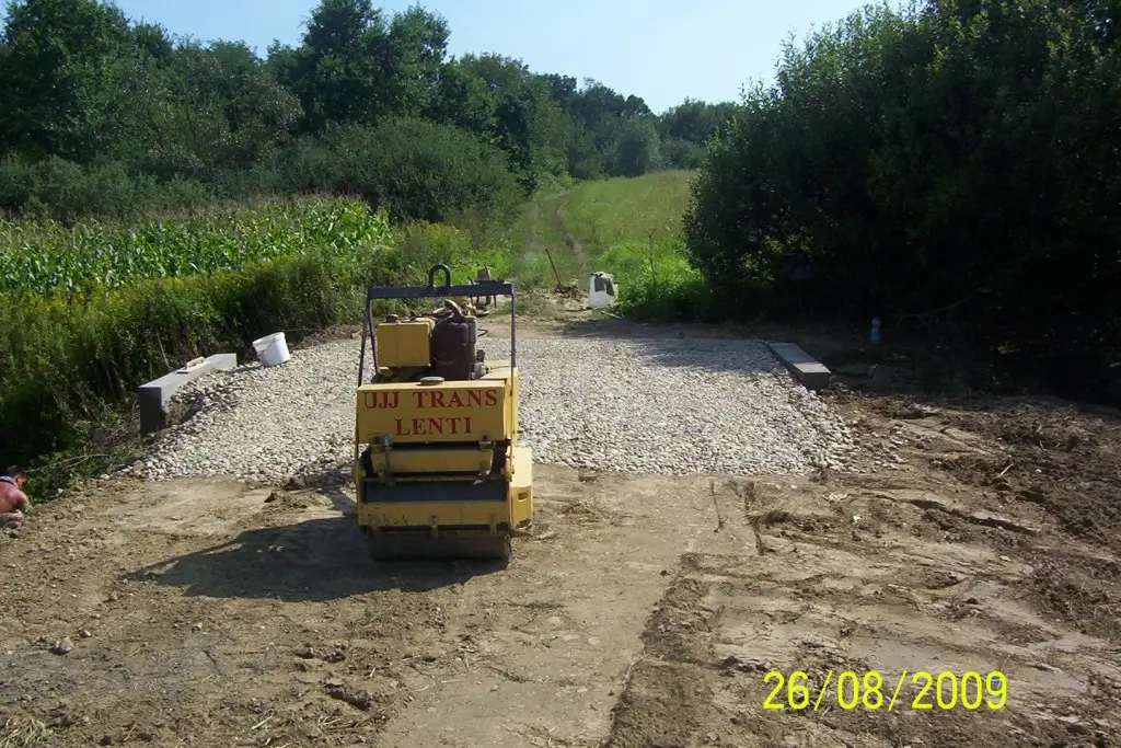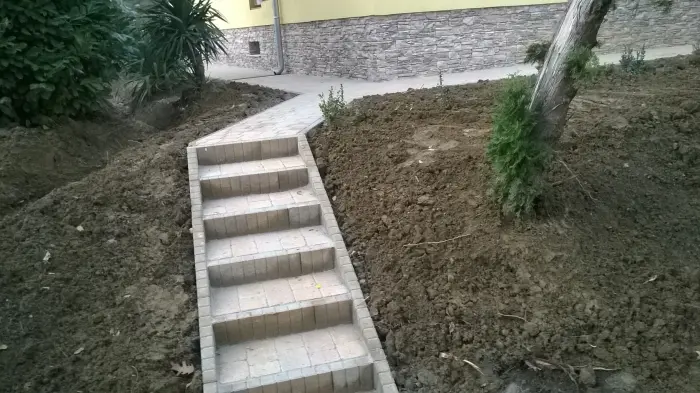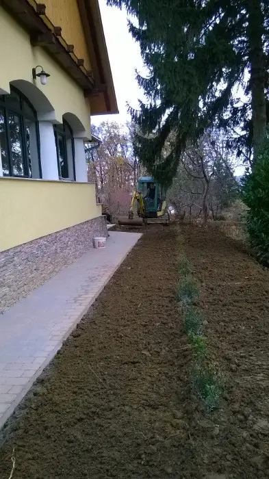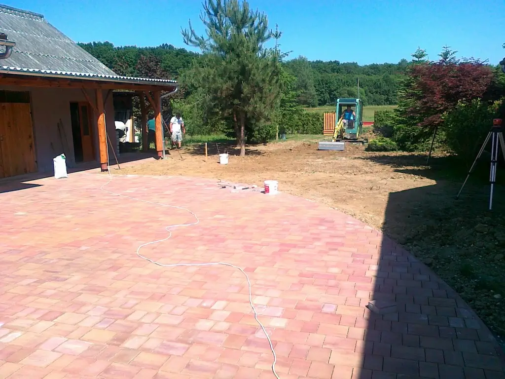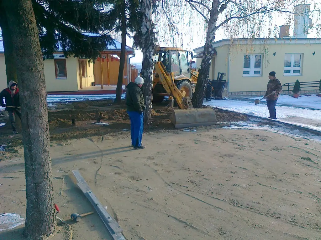 E tevékenységek során merült fel megrendelőink részéről a komplett szolgáltatás igénye, ezért a 2000-es évek derekán létrehoztunk egy építő csapatot, így már kisebb utak, járdák, átereszek, hidak térkövezését, betonozását, illetve kövezett udvarok, terek építését is vállalunk.