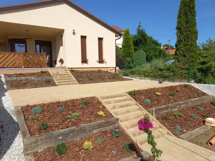 Kocsibejárók, járdák, kerti kiülők, támfalak, terek, teraszok